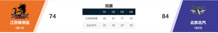换边后,北汽队再次派出先发5人阵容,又将领先优势扩大到两位数。全队12名球员都获得了出场机会,三节过后,北汽队以74比60领先。周琦与范子铭组成“双塔”出场,在单外援的末节,江苏队很难掀起持续的得分高潮。双方都无心恋战,北汽队打得很从容,顺利赢下了比赛。北汽队先发5人全部得分上双,杰曼取得全队最高的19分。赵睿首次代表北汽队出战正式比赛,得到了10分4次助攻。下周一,北汽队将迎来本赛季主场首秀,对阵新疆队。